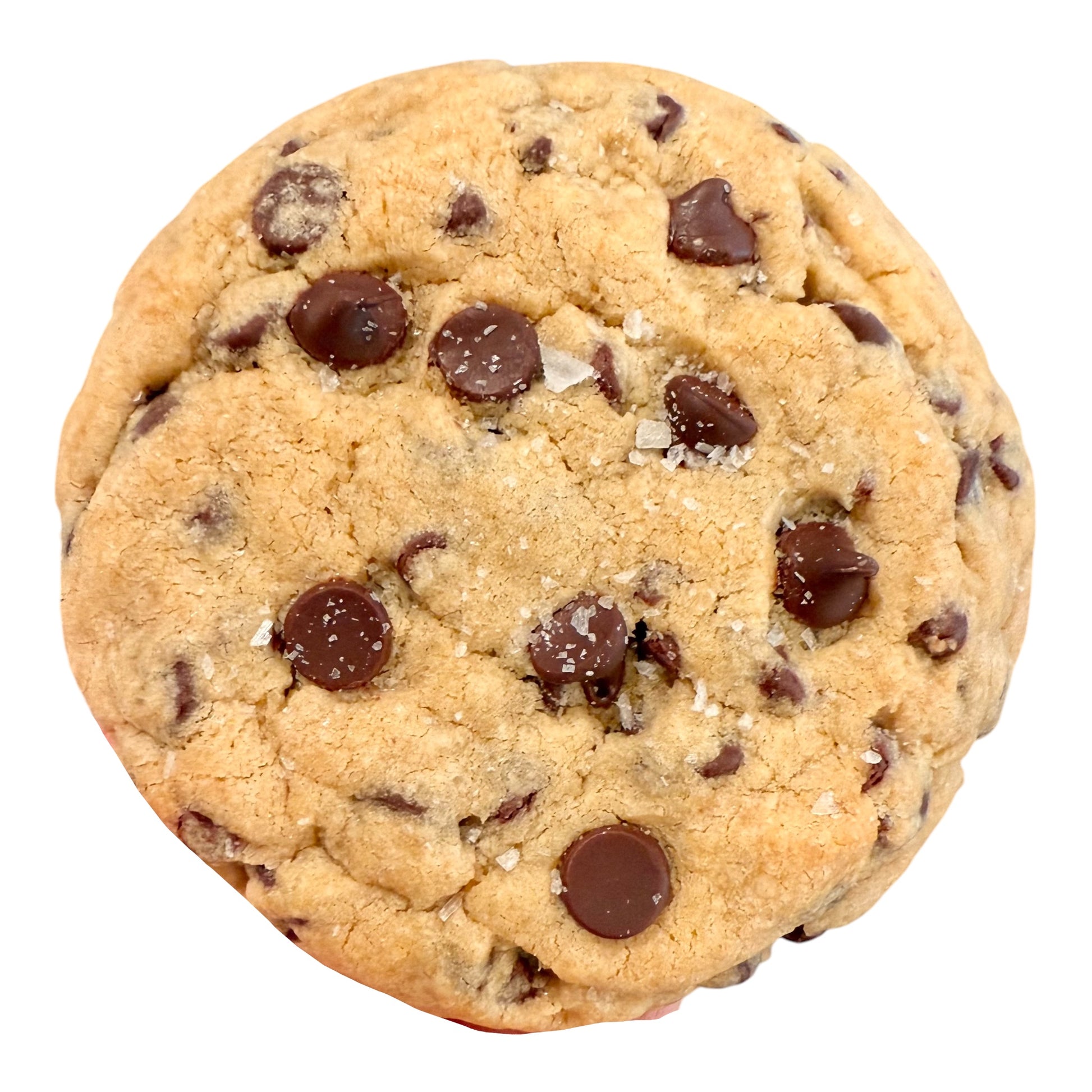 Indulge in the ultimate chocolate chip cookie experience. This large 5.5 oz gourmet cookie is slightly crisp on the outside, soft and chewy on the inside, loaded with Ghirardelli chocolate chips and topped with a sprinkle of flakey sea salt.