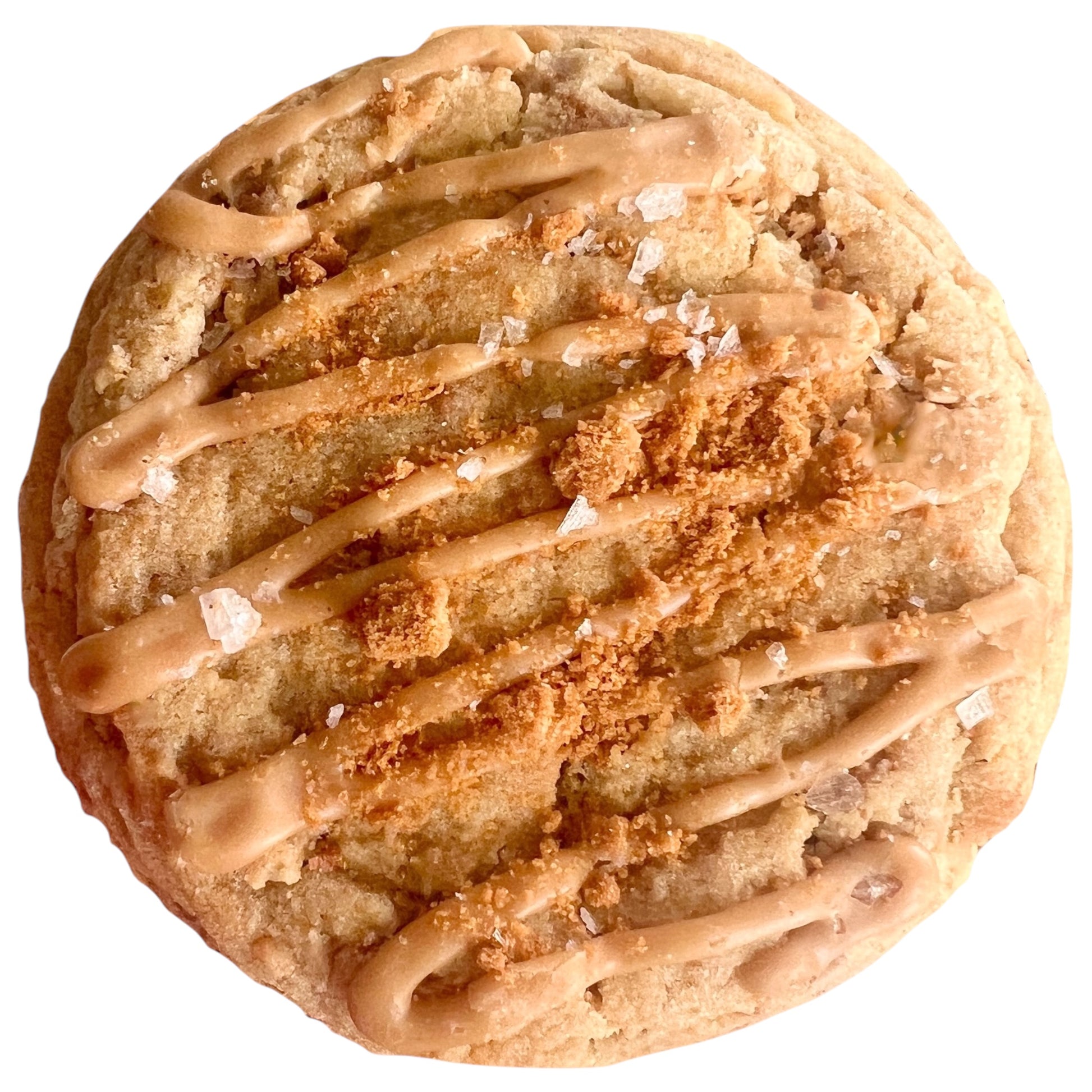 This is a subtly sweet brown sugar cookie with chunks of biscoff cookies throughout. It's topped with a cookie butter drizzle and a sprinkle of sea salt. This gourmet cookie weighs in at 5.5 ounces and is large enough to share (or not).